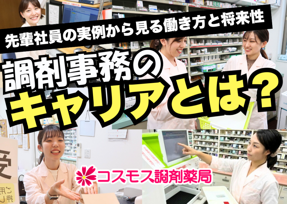 WHAT'S NEW最新情報 採用関連 2026/4/3 【🌷調剤事務のキャリアとは?先輩社員の実例から見る働き方と将来性【コスモス調剤】🌷】 ...続きを見る お知らせ 2026/4/1 【✨🌸令和8年度 コスモス調剤グループ 入社式を行いました🌸✨】 ...続きを見る 採用関連 2026/3/25 🌷【後編|キャリアアップ編】活躍している人ってこんな人|つながりの中で広がった私の事務職キャリア ...続きを見る 採用関連 2026/3/23 🌷【前編|就活・入社編】活躍している人ってこんな人|調剤事務としてのスタートと成長 ...続きを見る お知らせ 2026/3/19 【薬学生の企業研究に】調剤薬局で働く薬剤師のリアル|HPの「先輩社員の声」をリニューアルしました🙆♀️💊 ...続きを見る 取り組み紹介 2026/3/16 【薬剤師・調剤事務の研修✏️】1~3年目社員が参加!目標振り返り研修の様子をご紹介!|コスモス調剤💊 ...続きを見る