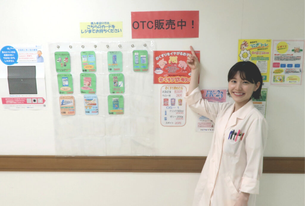 コスモス調剤薬局小牧駅南店は近隣に複数の診療科があることから、OTCもわかりやすいように掲示しています。