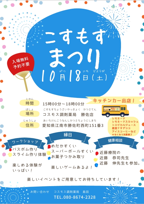 10/18(土)「コスモス調剤薬局 勝佐店」(愛知県江南市)にて、地域イベントを開催いたします!!✨
