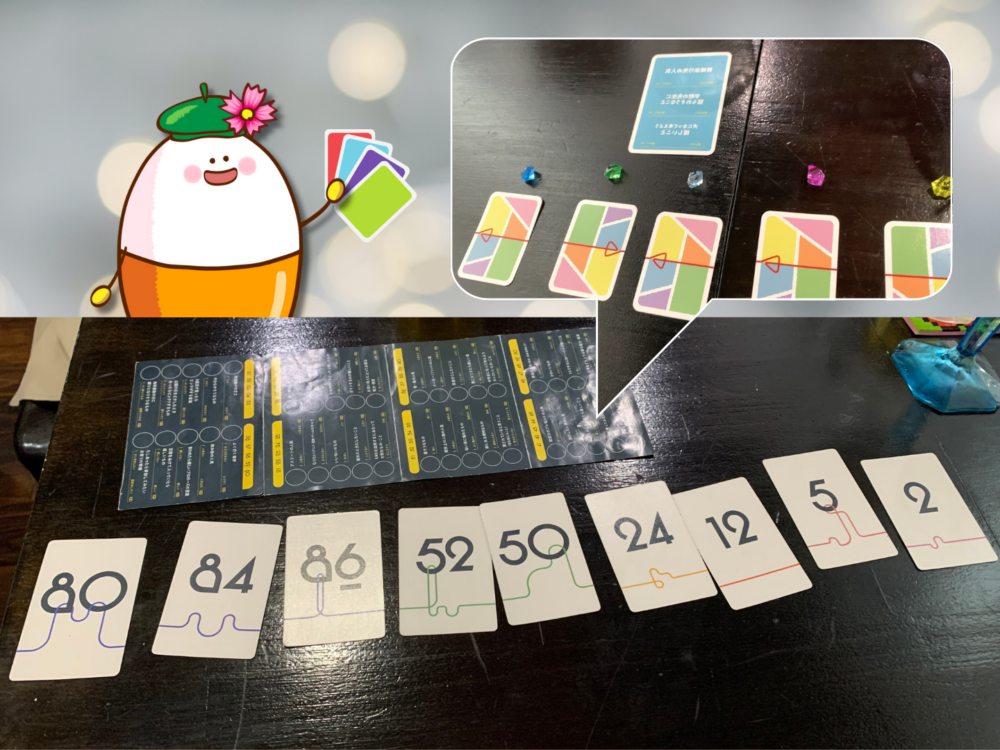 「小さい数字を出したつもりが思わぬ列に吸い込まれる」など、運と戦略のバランスが絶妙で、とても盛り上がるゲームでした!🥳
