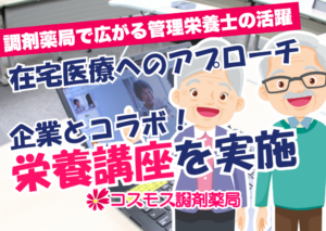 地域に根ざした薬局を目指して愛知県内に約50店舗を展開している、「コスモス調剤薬局」広報担当のIです☺️ 今回は、アボット … 続きを読む 【👩🍳当社管理栄養士が講師を務める「コラボ栄養講座」を開催しました ― アボットジャパン様×キッセイ薬品様×コスモス調剤 共催 ―👩🍳】