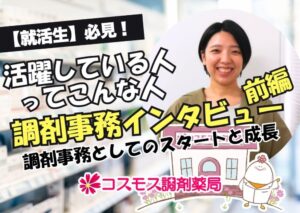 皆さんこんにちは! 愛知県に約50店舗を展開する、株式会社コスモス調剤の広報担当Iです🙂🌼 本日は、私と同じ部署で働く、調剤事務経験のある先輩にインタビューしました! ぜ … 続きを読む 🌷【前編|就活・入社編】活躍している人ってこんな人|調剤事務としてのスタートと成長